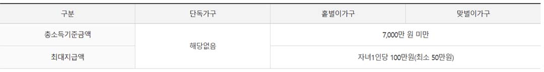 - 18세 미만의 부양 자녀(2006년 12월 31일 이후 출생)가 있어야 합니다.